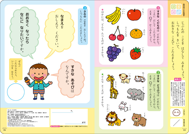 調子のよい文をリズミカルに読んだり、文字を鉛筆で書いたりしましょう。言葉を豊かに広げ、話を聞く力、考える力、表現する力を伸ばしていきます。