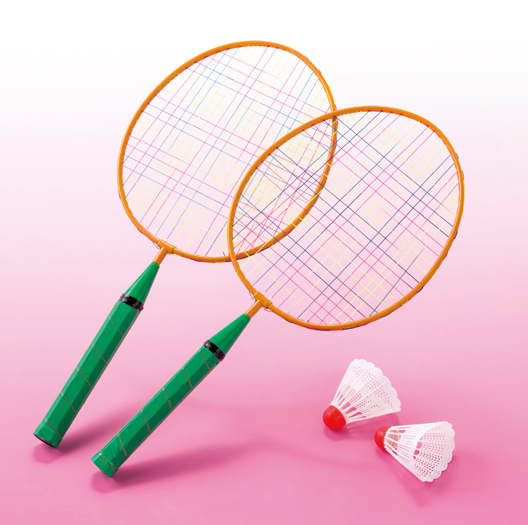 扱いやすい小さなサイズのバドミントンです。ラケット2 本、シャトル2 個のセットです。