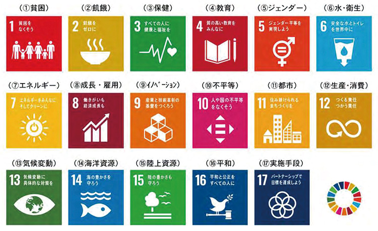 誰ひとり取り残されることなく、人類が安定してこの地球で暮らし続けていけるように、世界が直面しているさまざまな課題を整理して、解決のための17 の目標を示したのがSDGs(持続可能な開発目標:Sustainable Development Goals)です。国際社会は2030 年を目指してこの目標を達成しようと取り組んでいます。そこには、現代そして未来の子どもたちの平和な暮らしを守らねばという決意が込められています。