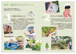 身近な自然の中で楽しめる「植物あそび」「栽培」「製作」のアイディアを、春・夏・秋・冬・一年中に分けて110案紹介します。
