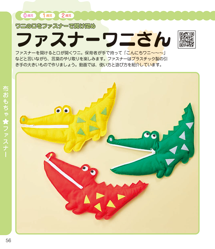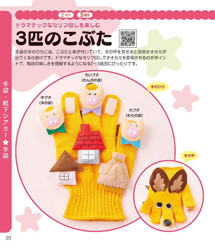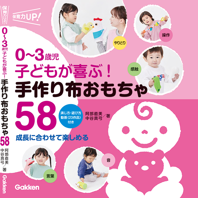 手袋・靴下を使ったシアターと、手作り布おもちゃの製作アイディア集。追視、感触、操作、構成、認識、やり取り、言葉などといった発達を育む楽しいおもちゃがいっぱい! 阿部直美先生、中谷真弓先生などによる、シアターの演じ方や遊び方の動画(23作品)付。