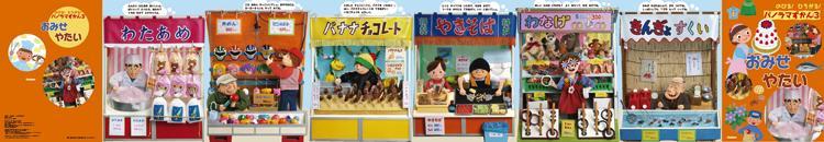 あれを買おうかな? こんなものも売ってるよ! 商店街と屋台がみんなをお出迎え。ごっこ遊びにも使えます。