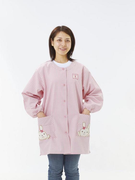 うさぎ前ボタンスモックピンクL