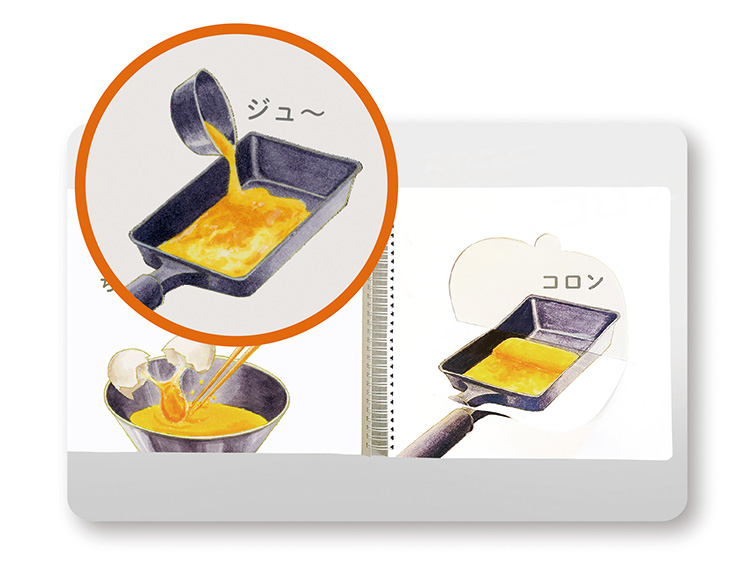 唐揚げを揚げて、たまごやきを焼いて……仕掛けと料理にまつわるオノマトペを楽しむ大型えほんです。リズミカルな文章は読み聞かせに最適です。