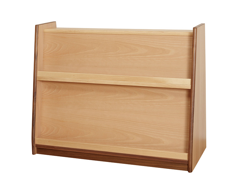 表紙の全面を見ることができる両面絵本棚です。子どもが手に取りやすい高さに設定しています。