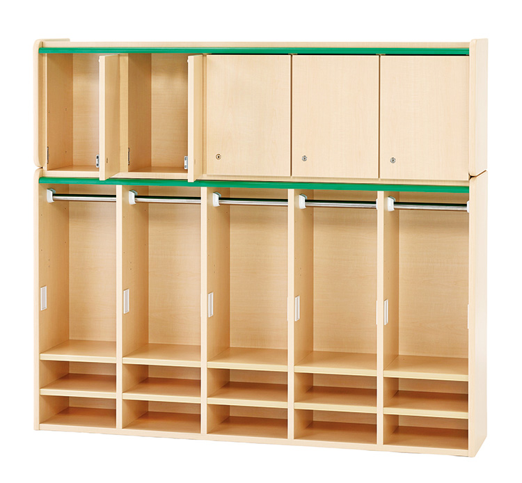 スリムシリーズの上に置くことができる扉付き上棚です。子どもたちの手が届きにくいところに貴重品などを収納することができます。
