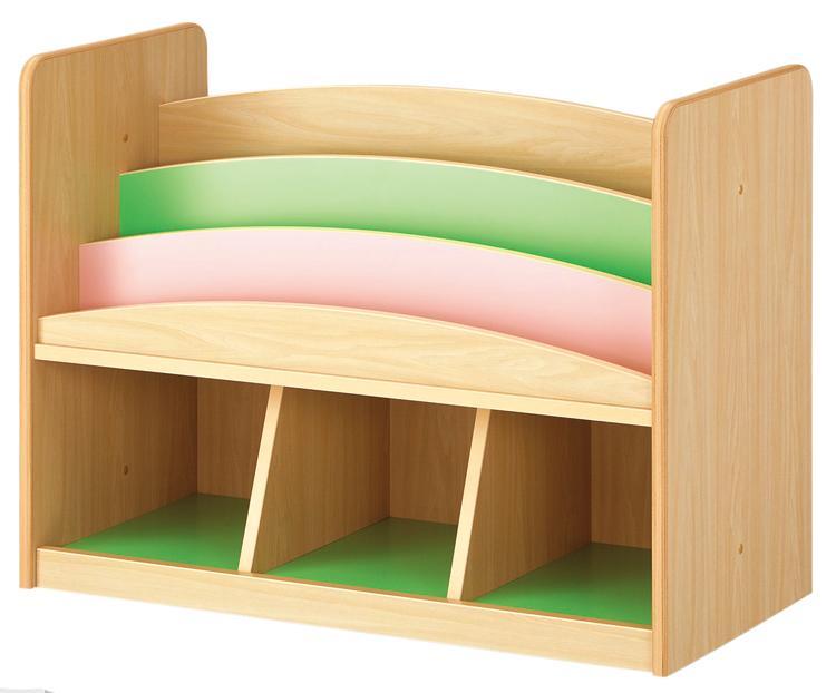 絵本などを整理するのに適しています。上段は表紙を表にして整理できますので低年齢児が絵本を選びやすくなっています。