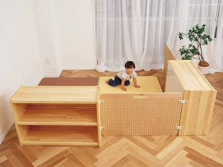 「くぎってフェンス」と組み合わせできる収納棚です。本体のほか、背板や連結パーツ・キャスターなどをお選びいただけます。