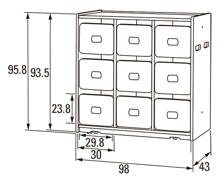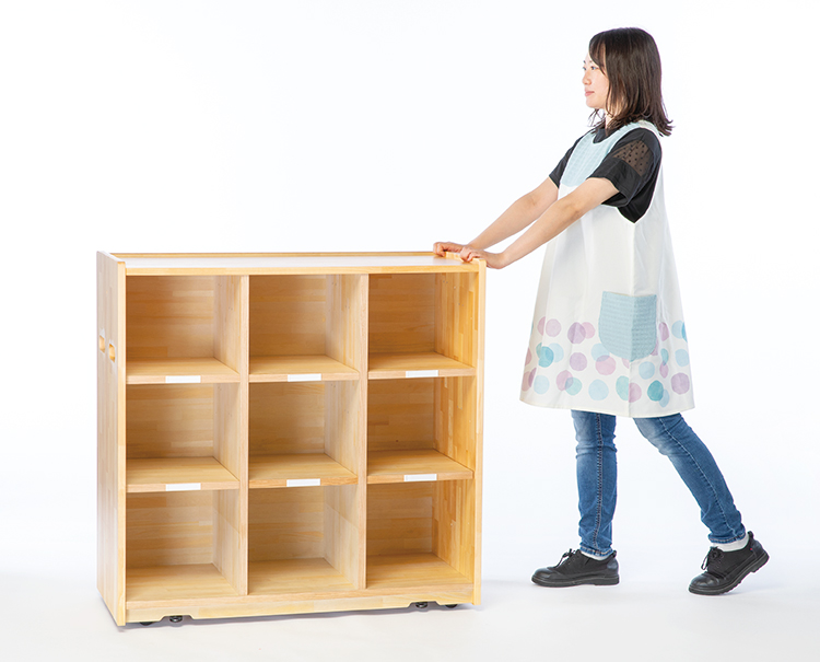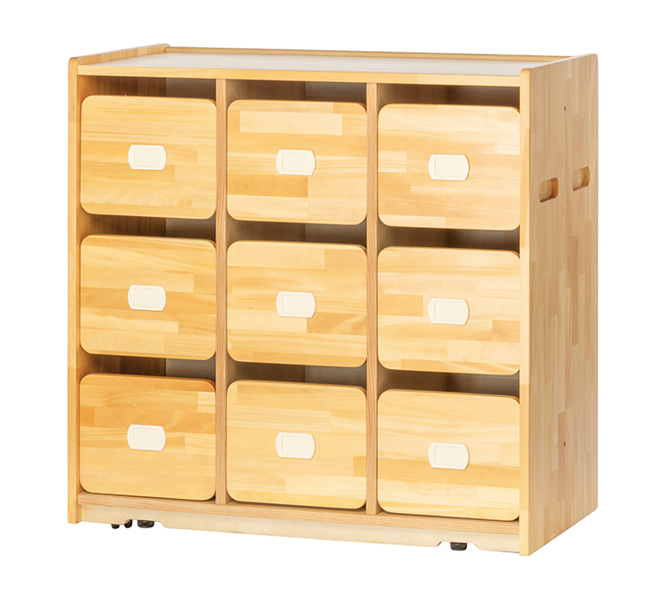 衣類や用品の収納に適した棚です。スムーズに引き出せるレールを使用しています。
