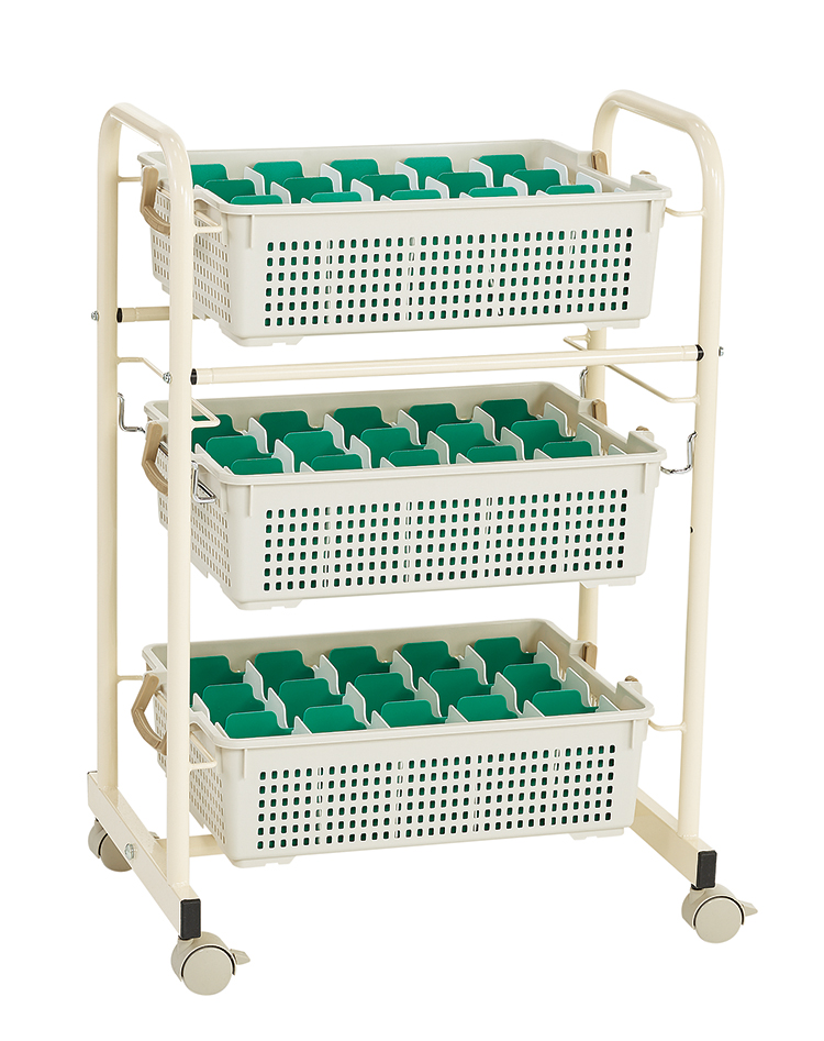 ●付属品:カードホルダー3枚・ネームシール45枚 ●材質:本体=スチール バスケット=ポリプロピレン・PS 仕切り=ポリエチレン●重量:8.5kg