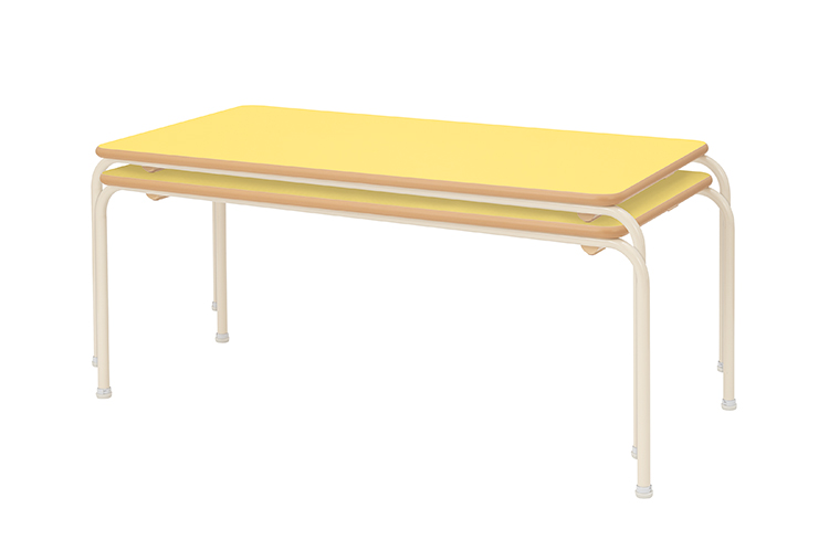 脚部にアルミニウムを採用した、軽量型の固定式テーブルです。重ねたときに脚やフレーム同士がぶつからず、天板が密着され場所をとりません。キャスターなし。