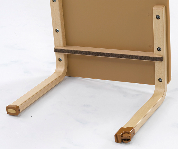 スタッキングができる6人用木製固定型テーブルの軽量タイプです。裏面にはスタッキングのときにスライドしやすいように、天板保護を兼ねた素材を取り付けています。