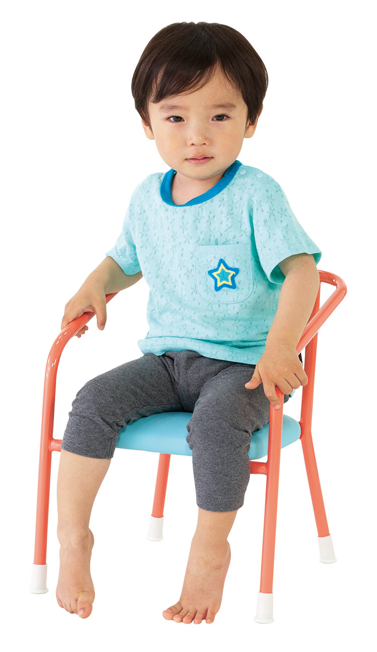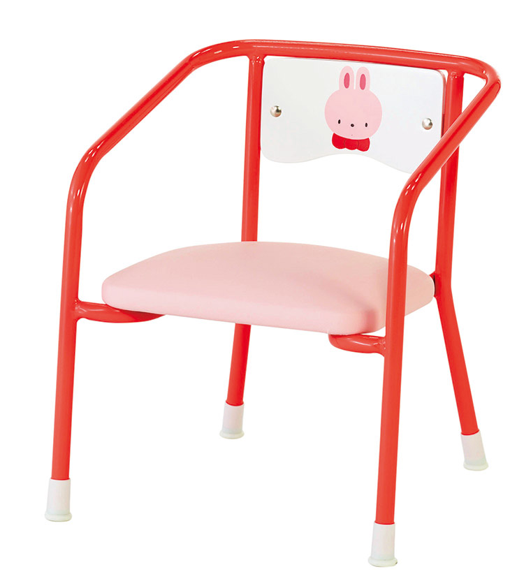 乳幼児向けのひじ掛けの付いたかわいい椅子です。安定性がよく、スタッキングできます。座る部分は感触のよいビニールレザークッションで、汚れも拭き取れます。