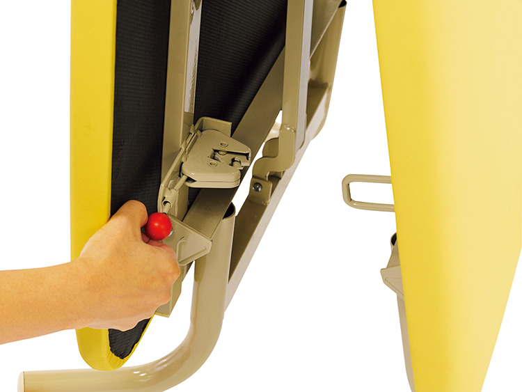 緊急時にワンタッチで使用できる保健室用ベッドです。使用時のはね上がりや開閉時に指や手を挟まないよう安全ダブルロック式になっています。折りたたみ時の開き防止ロックもついています。レザーは次亜塩素酸対応/難燃/防汚/抗菌仕様になっています。ショート、ロングにベッドガードは付属していません。