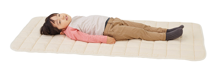 アースプラス加工した生地を使用することで、細菌、ウイルス、アレルゲン、臭い等のたんぱく質を吸着分解するマットです。おねしょをしても、翌日には臭いを消す効果があります。