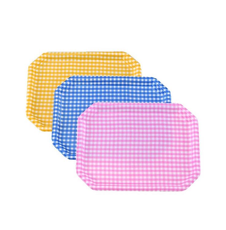 チェック柄がカジュアルで、優しいトレーです。表面にはノンスリップ加工を施しています。