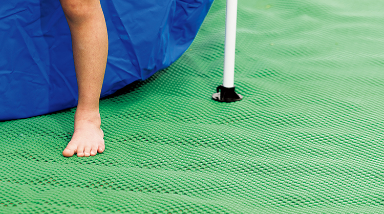確かな衝撃緩衝性で、子どもたちの跳び回る床環境を安全に変える新感覚安全床材です。大きな穴で水・砂を下に落とし、足指をつかんで滑りにくく、プールサイド、ベランダ、テラスに最適です。軽量なので簡単にしまうことができます。