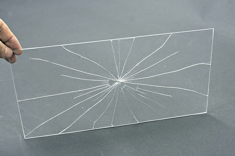 ▲ひびが入ってもガラスが飛び散りません。