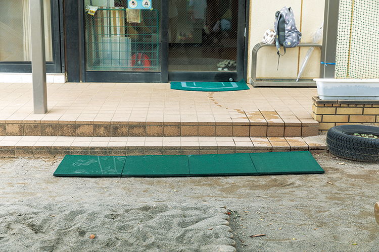遊び場やぬかるみやすい場所への安全対策マットです。適度な弾力性で水はけがよく、雨の後やプールサイドでも滑りにくいマットです。