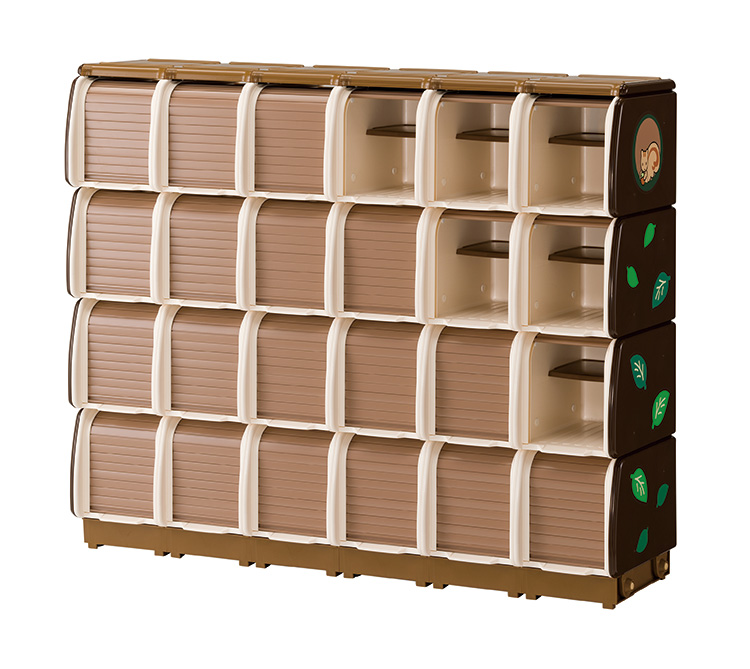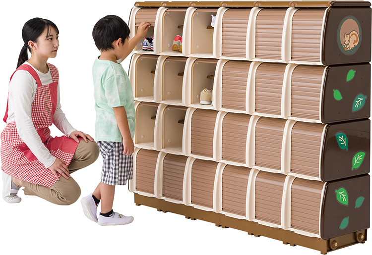 水に強いプラスチック製シューズボックスでシャッターが付いています。高さ20cmまでの長靴が収納できます。水平設置用アジャスター、壁面固定用チェーン付です。