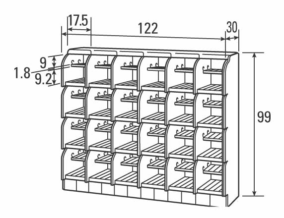 | 商品コード | 段×列 | 幅(cm) | 高さ×奥行き(cm) |
