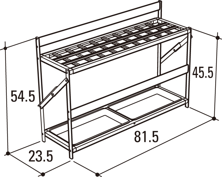 60-71520-202 45本●材質:アルミ●寸法:66.8×40×59cm●重量:45本=3.3kg60-71520-209 15本●材質:アルミ●寸法:44×23.5×49.6cm●重量:15本=1.5kg