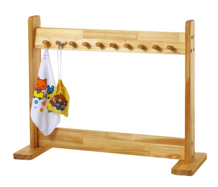 フックの高さを55cmと2歳児の体型に合わせた木製フックスタンドです。丸みのある木製フックで安心して使えます。フック20個付。