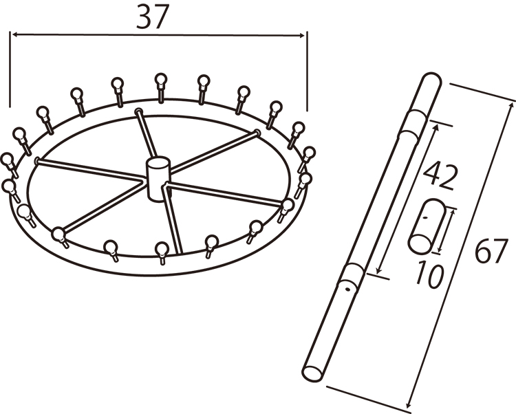 フレーム1台あたりフック20個付。シールを貼れるリング部は太めになっています。