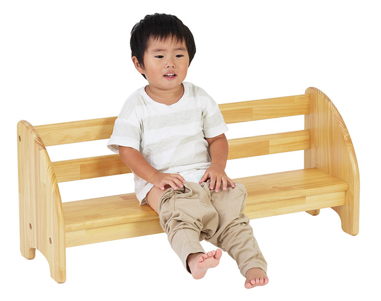 はき替えが「できる!」ようになるベンチです。○ 座面高さが15cmになっていることで、靴や靴下、ズボンやパンツ式おむつの着脱が一人でできるようになります。○角に丸みを付けていますので、安心してお使いいただけます。