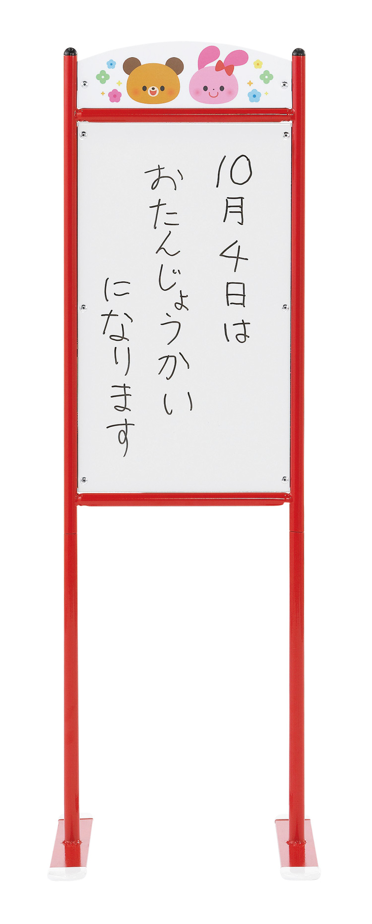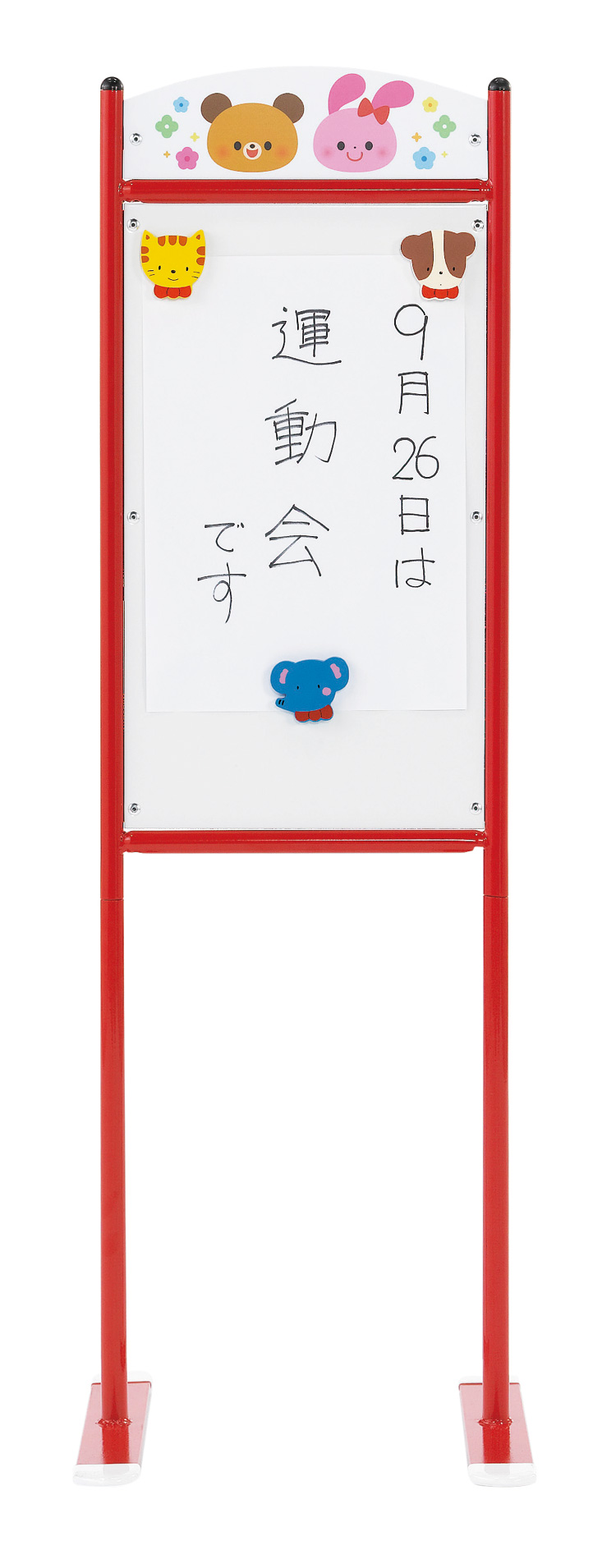行事や催し物の案内などいろいろな用途に手軽に使えます。プレート部にホワイトボードマーカーで書き込み可能。
