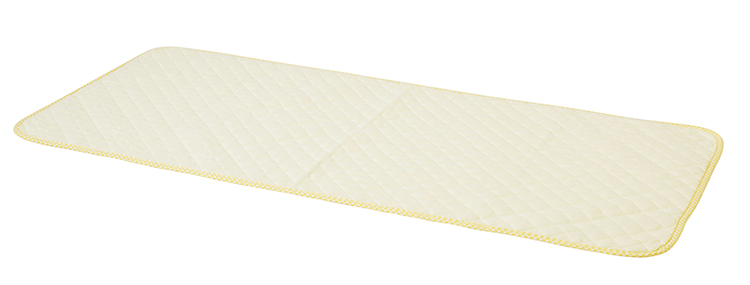手触りのよいパイルキルト地のおねしょシーツです。裏地に防水加工を施しており、水を通しません。ネットに入れて洗濯機で洗えます。