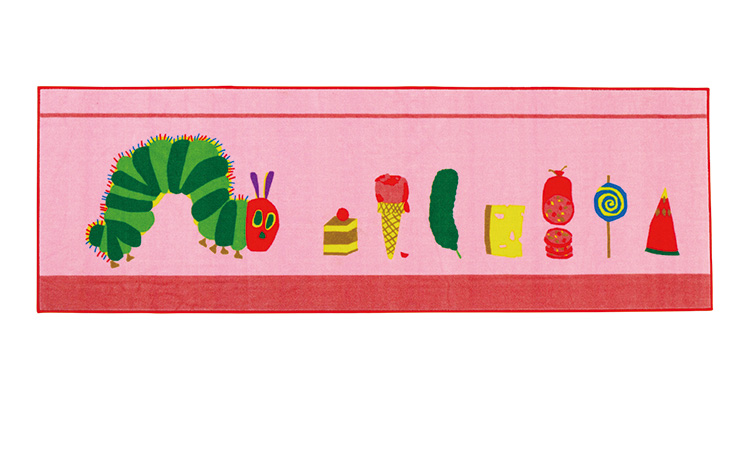 軽量で、洗濯機で洗えるはらぺこあおむしのマットです。玄関やクラスの入り口に置いて、かわいらしい雰囲気を演出します。へたりにくいナイロン仕様。裏面は滑り止め仕様です。
