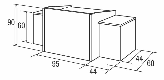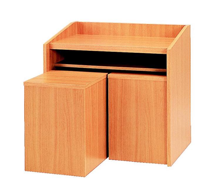 格調ある木目調の花台付講演台です。花台(2台)は本体の中に収納できます。