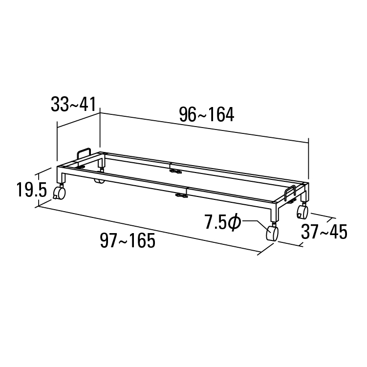 ●材質:スチール・ABS樹脂●寸法: 最小=96×33×高さ19.5cm 最大=164×41×高さ19.5cm●重量:7kg