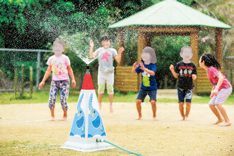 ホースを繋げるだけでぞうさんのお鼻からミストや噴水(シャワー)が吹き出します。