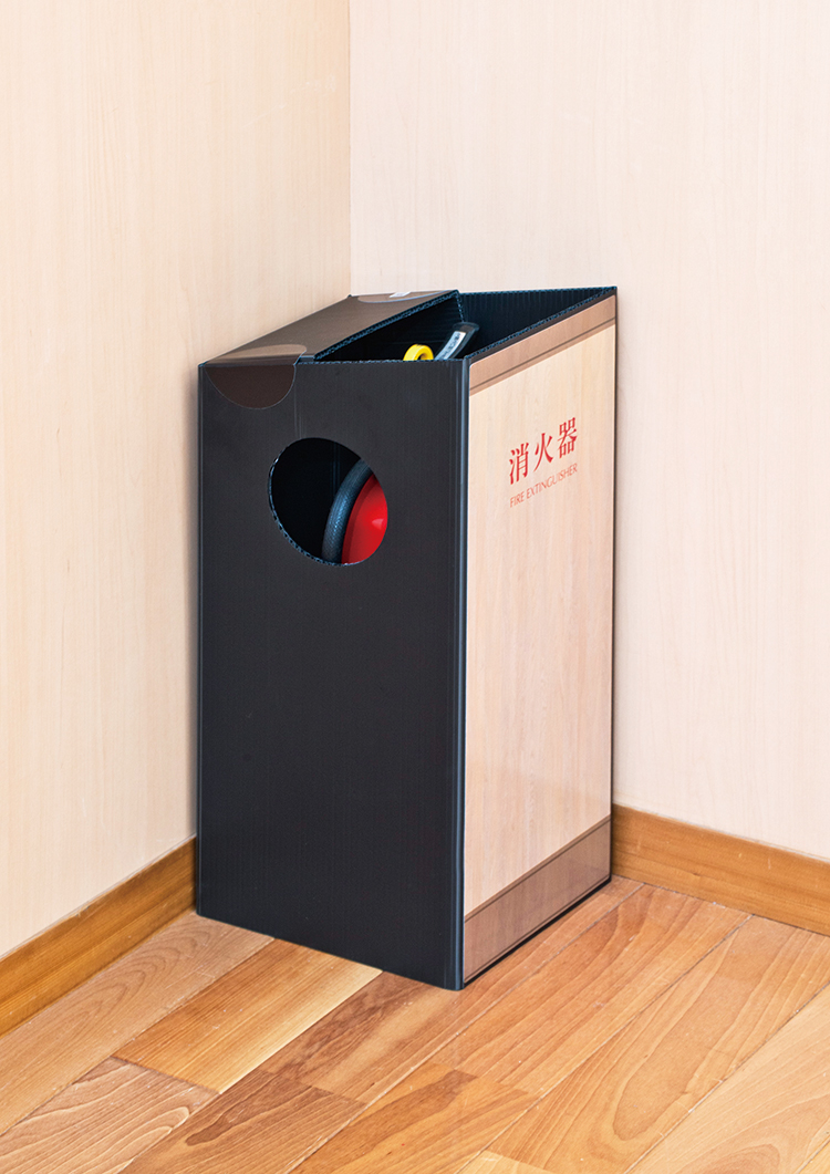 底板がないので、上から被せて消火器が景観を損ねるのを防ぎます。