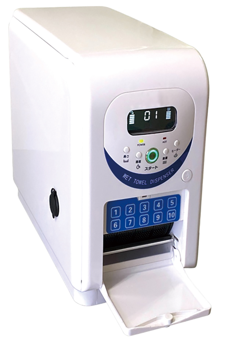 専用除菌抗菌液を本体に入れ、ボタン一つでいつでも温かいウェットタオルが出てきます。除菌液は赤ちゃんの肌にもやさしいタイプなのでおむつ交換時のお尻拭きや、顔、身体拭きにも使えます。タオルの長さは5段階、湿り具合を6段階から選べます。ペーパータオルが切れたら専用のロールを交換します。
