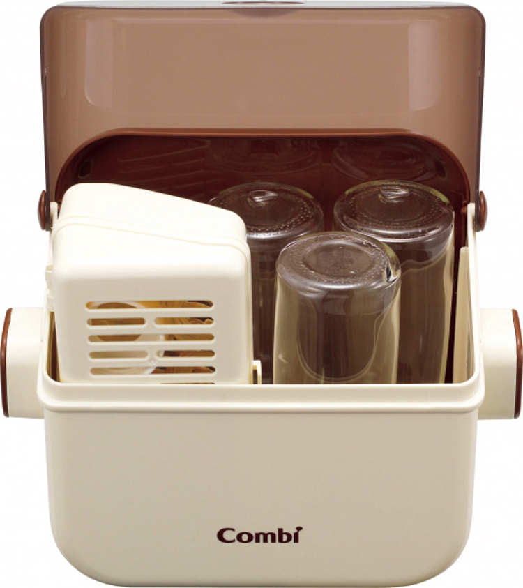 60-74441-093哺乳瓶などの除菌が電子レンジで簡単5分。除菌後はそのまま保管ケースとして使用できます。哺乳瓶が3セットまで収納できます。便利な小物ケース付。