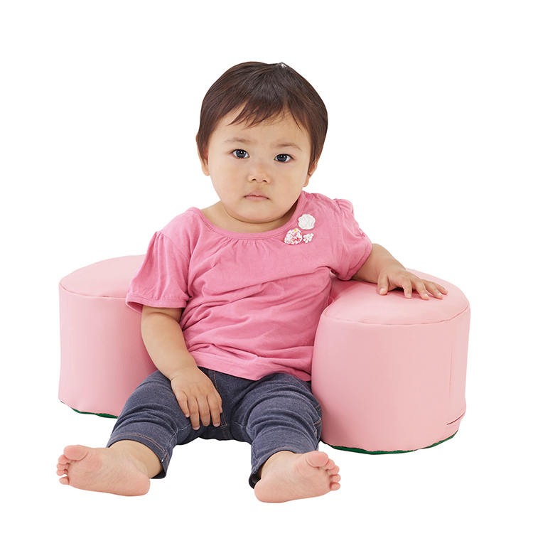 お座りを手助けするクッションです。表面は柔らかいソフトレザーで、アルコールや次亜塩素酸水で拭けるので衛生的です。裏面滑り止め付。