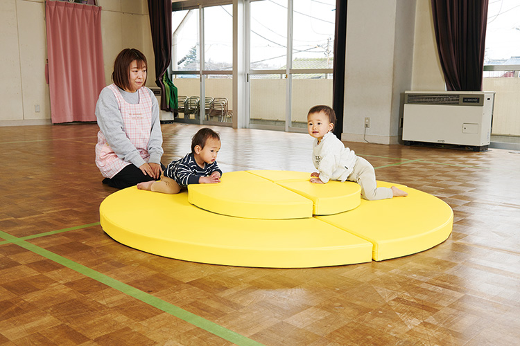 60-76347-052下の段から2段目へ、1段1段ステップアップしてハイハイの意欲をかき立てます。腕で上体を支える力や、足で蹴って進む力を育みます。面ファスナーで繋げて半円や円にして使用も可能です。