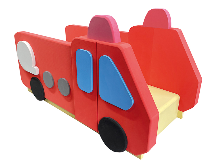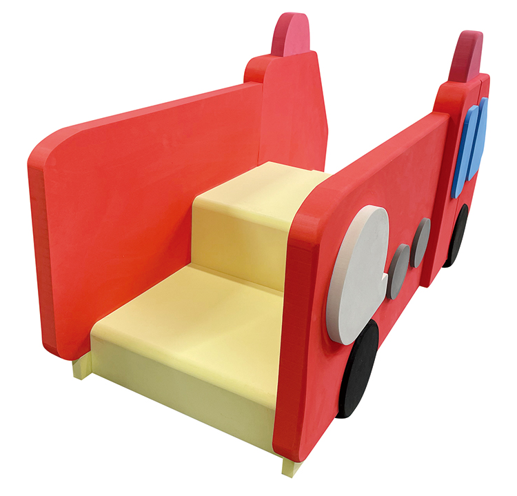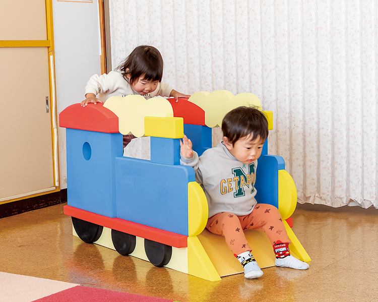 EVA製の室内遊具です。柔らかい素材で子どもがぶつかったとき、衝撃を和らげます。デッキ高も30cm前後と低く、大人が援助しやすいように上部から手の届く構造です。
