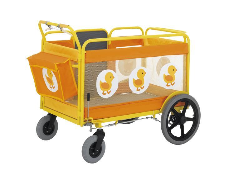 『ひよことおでかけひなん車』、『おでかけひなん車防炎仕様』専用の内カバーです。メッシュ仕様なので、園児たちが座っていても、内側から外が見えるようになっています。夏場のお散歩など涼しく快適にすごすことができます。