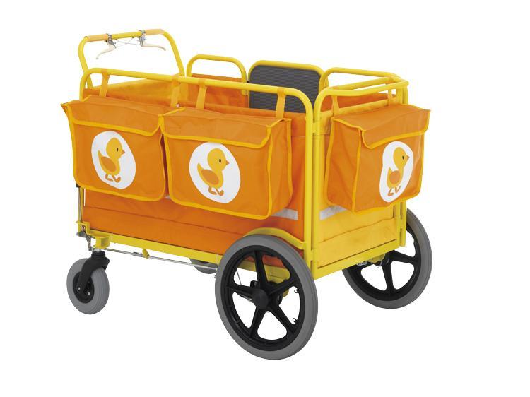『ひよことおでかけひなん車』専用バッグです。バッグの底面は泥など汚れがたまらないようにメッシュ仕様になっています。取り外しが簡単なバックル式です。