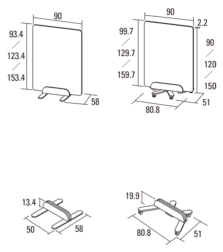 90×150=90×150×2.2cm スタンド=58×50×13.4cm