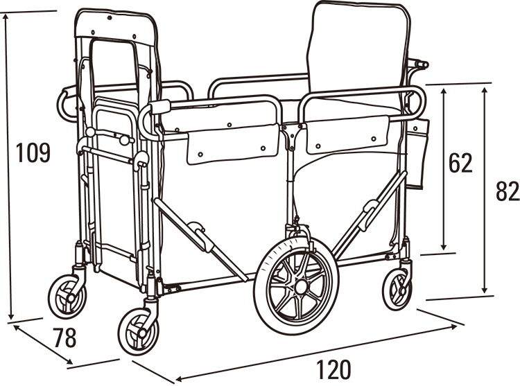 ●材質:スチール・ターポリン・他●寸法:120×80×高さ96cm 折りたたみ時=78×47×高さ123cm●重量:28kg●耐荷重:90kg<別売品>60-22702-102 お散歩兼用避難車日除け <別売品>60-22702-101 保護カバー