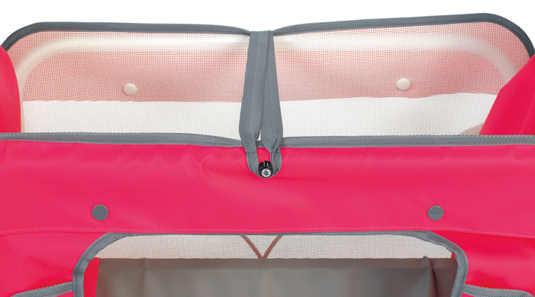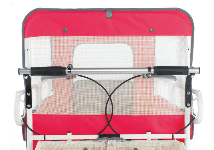 ハンドル部にいたずらしないようシートでカバー。メッシュ地なので、手前から子どもを確認しやすくなりました。 -