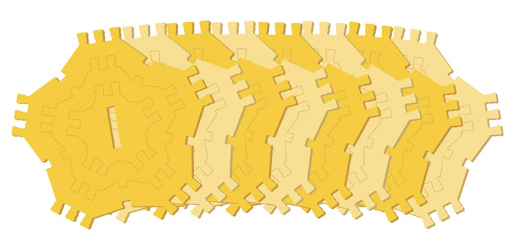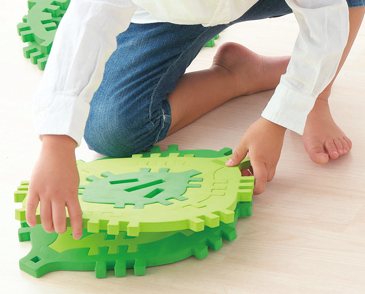 縦・横自由に組み立てて遊ぶことのできる玩具です。床に敷いたり、立体的に組み上げて秘密基地を作ったり、想像力を働かせながら全身を使って遊ぶことができます。