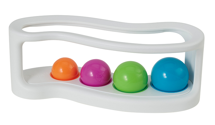 0歳から遊べる「ファットブレイン乳幼児セット」の第2弾。揺れる、回る、転がり落ちる。それぞれの特長で感覚に訴えて思わずふれたくなります。シンプルゆえに子どもの興味を引き付ける乳幼児玩具3種。
