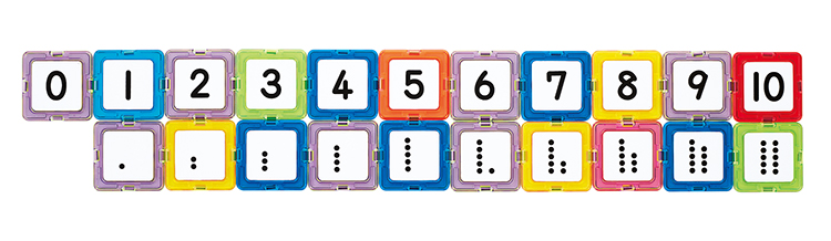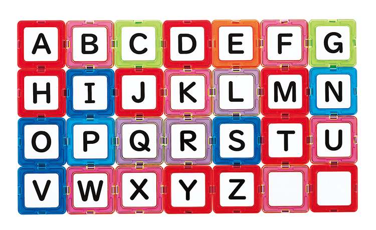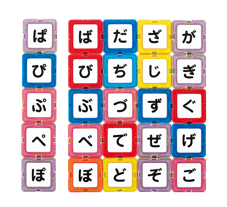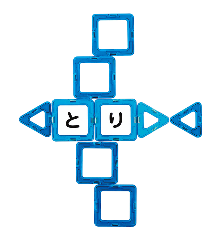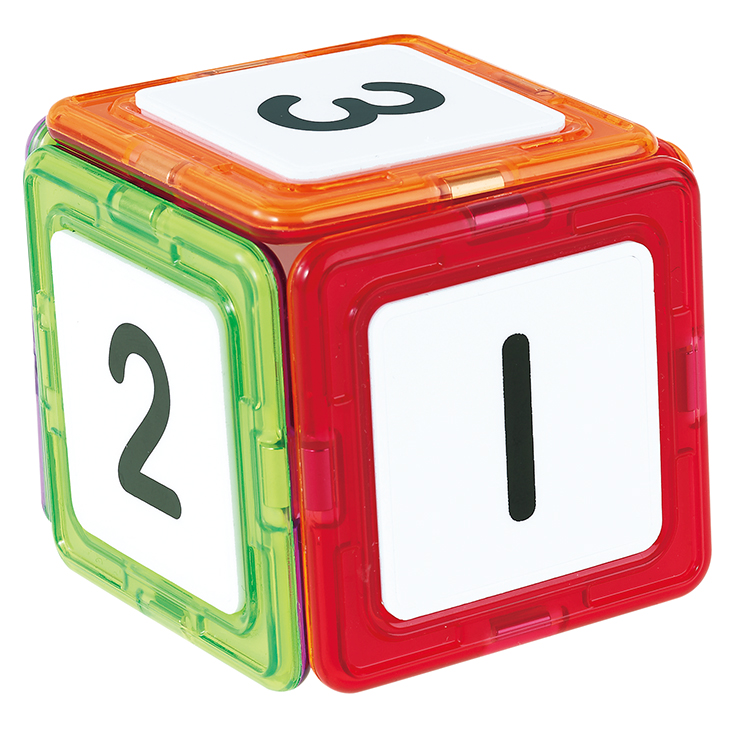 マグブロックの四角形に、もじ・かずが印刷された白いプレートを付けました。磁石がくっつくホワイトボードや壁などに付けて、もじ・かずで遊ぶことができます。既存のマグブロックセットに含まれる各種形状のブロックと合わせて使うと遊びの幅が広がります。
