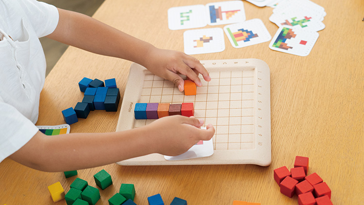 数、カラーの順序の練習だけでなく、集中力や想像力も養える教材です。キューブ積み木は、さまざまな色の立方体積み木を、カードで指定された形に沿って作り上げます。見本のイラストや写真の通りに積み上げることを目標にして遊ぶことで、集中力や忠実に再現する能力を鍛えることができます。カウンティングは、主に「数字を数えること」に注力し、ものの数え方や数字を遊びながら学ぶことができます。100個のブロックと24枚のプレイカードを使って、遊びの幅も広がります。
